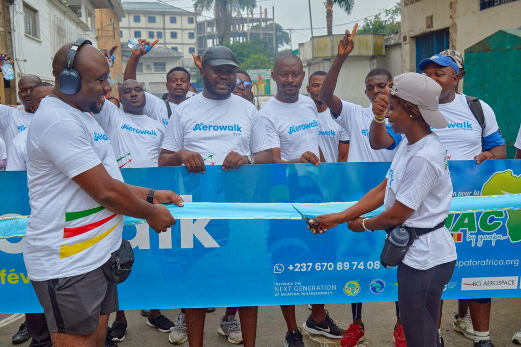 Dans le cadre de la Semaine de l’aviation pour la jeunesse de l’Afrique centrale (Sajac), Nous avons mobilisé ce dimanche 1er février à Douala une centaine de jeunes femmes et hommes pour une marche sportive à travers les sites historiques de la ville, afin de « démystifier » l’aéronautique et célébrer dix ans d’engagement au service des métiers du ciel.